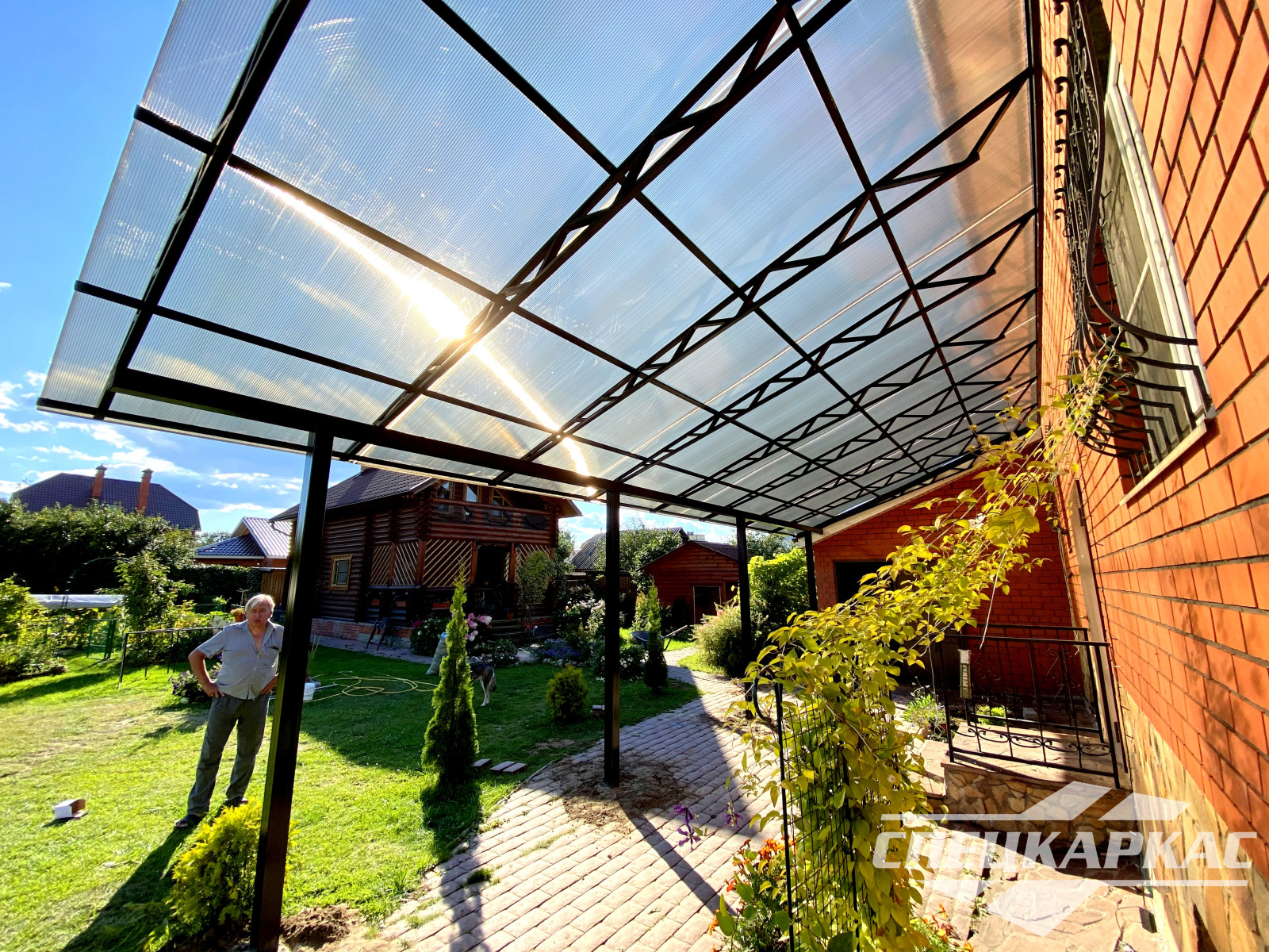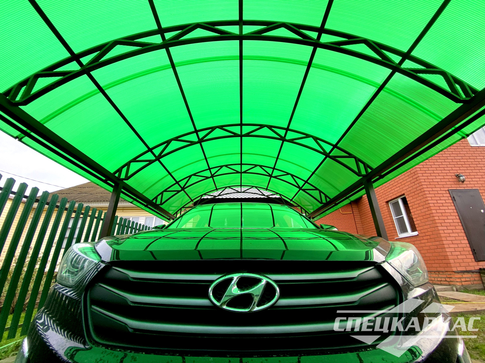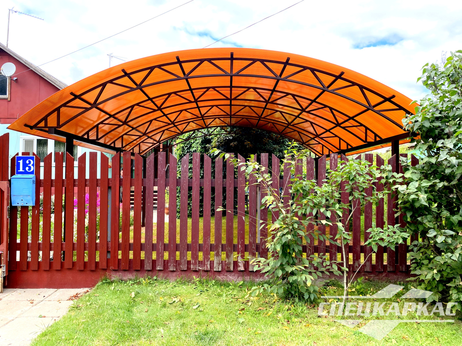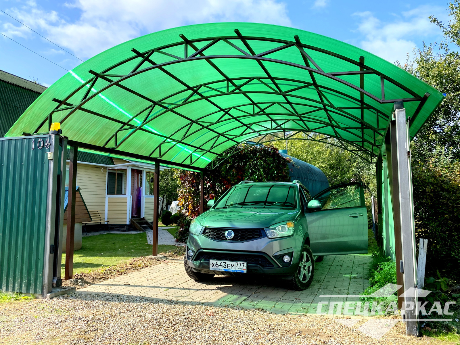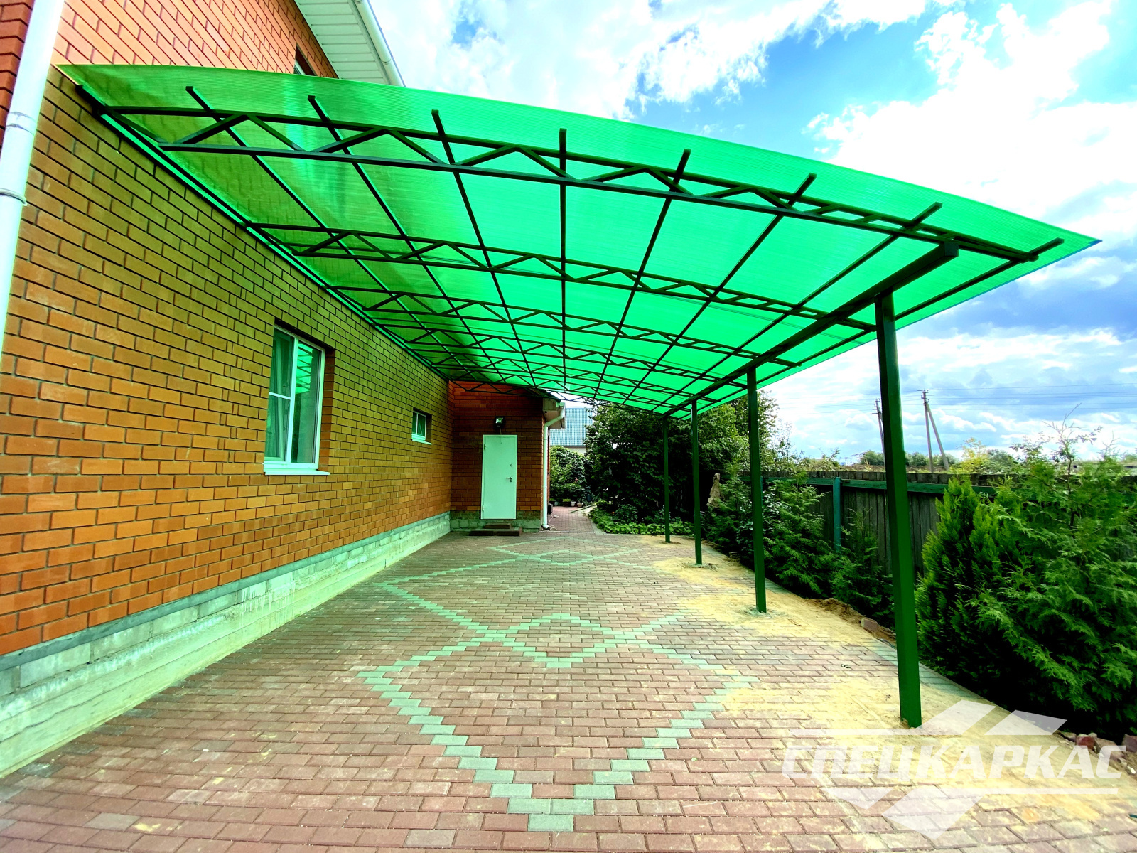 3D-проекты с картинками к моделям в каталоге дают точное представление о том, как устроены металлические навесы от СПЕЦКАРКАС. Но мы понимаем, что этой информации мало для того, чтобы составить полное представление о наших сооружениях. Поэтому мы сопровождаем коллекцию навесов из поликарбоната фото уже готовых объектов, которые мы сдали клиентам под ключ в Заокском или Тульской области.